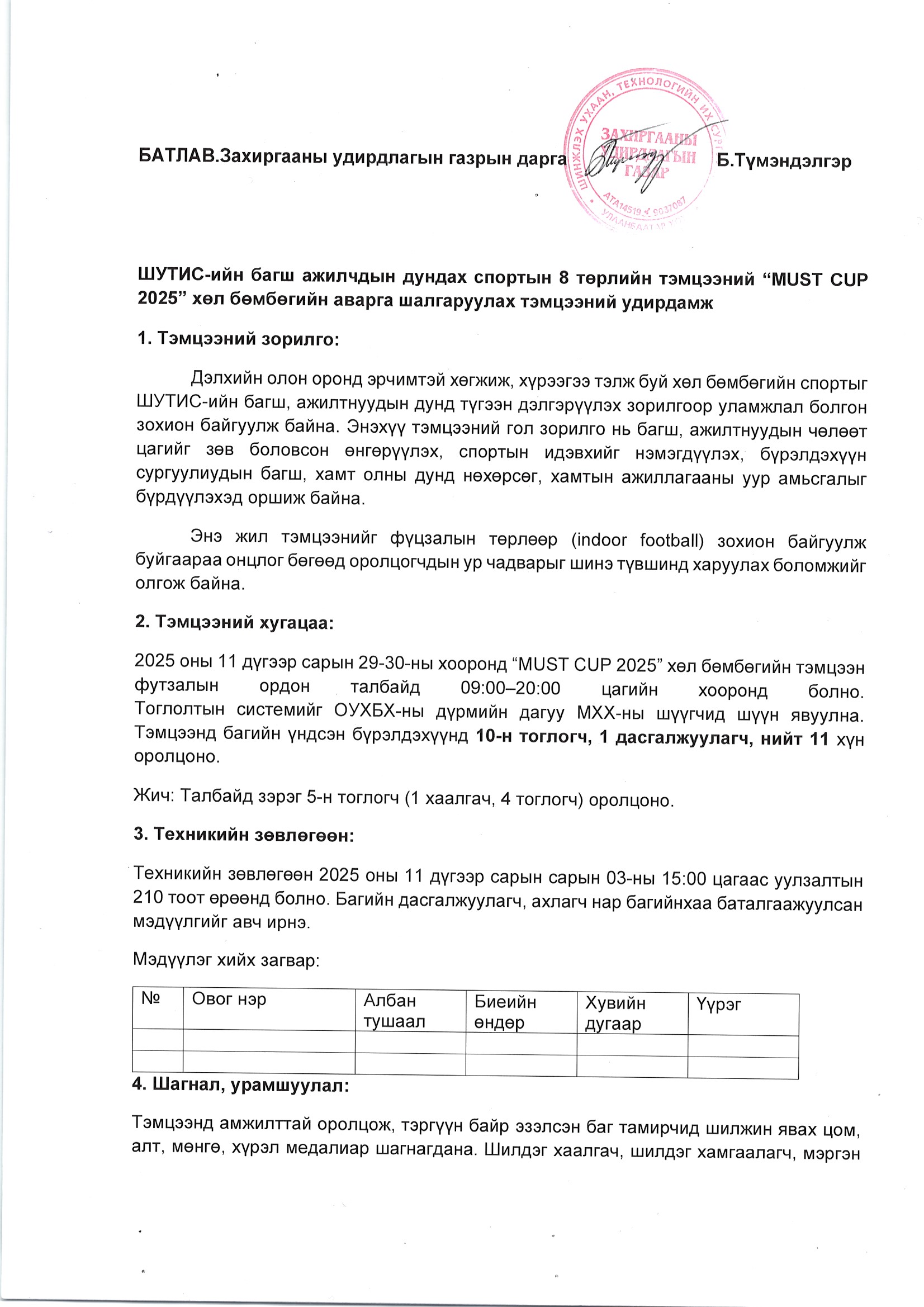 ШУТИС-ийн багш ажилчдын дундах спортын 8 төрлийн тэмцээний “MUST CUP 2025” хөл бөмбөгийн аварга шалгаруулах тэмцээний удирдамж