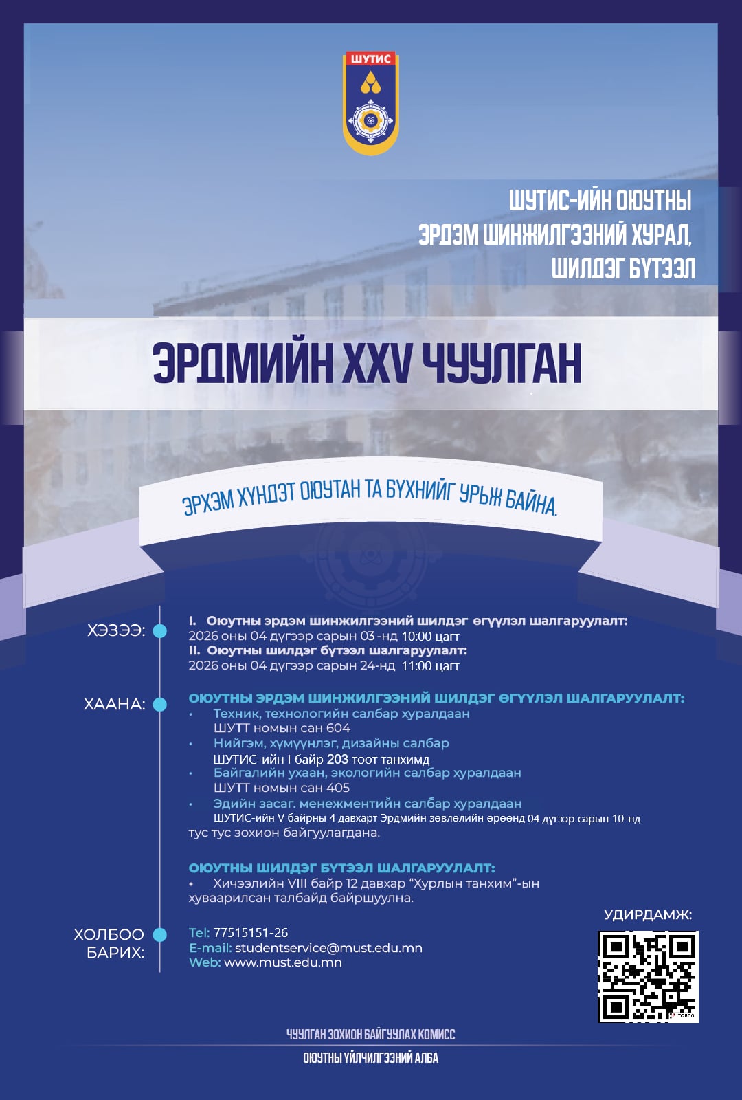 Оюутны эрдэм шинжилгээний шилдэг өгүүлэл, бүтээл шалгаруулах "Эрдмийн XXV чуулган"-д оролцохыг урьж байна.
