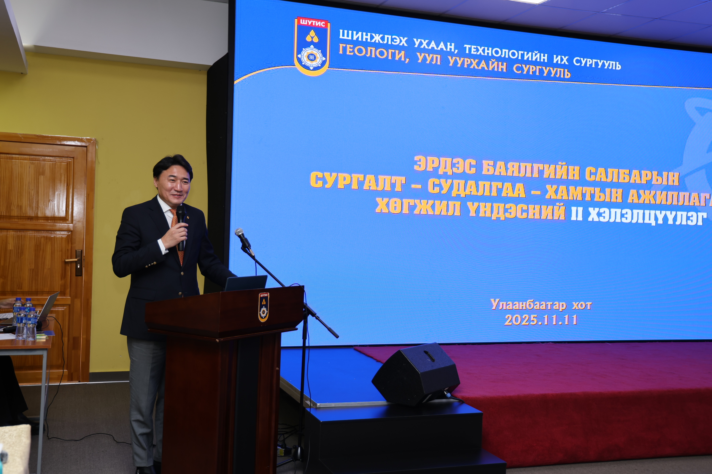 “Эрдэс баялгийн салбарын сургалт-судалгаа-хамтын ажиллагааны хөгжил” үндэсний II хэлэлцүүлэг ШУТИС-ийн хичээлийн 8 байрын хурлын танхимд 2025 оны 11 дүгээр сарын 11-ний өдөр боллоо.