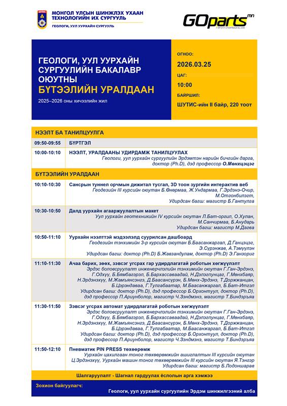 ГЕОЛОГИ, УУЛ УУРХАЙН СУРГУУЛ-ийн БАКАЛАВР ОЮУТНЫ БҮТЭЭЛИЙН УРАЛДААН маргааш болно