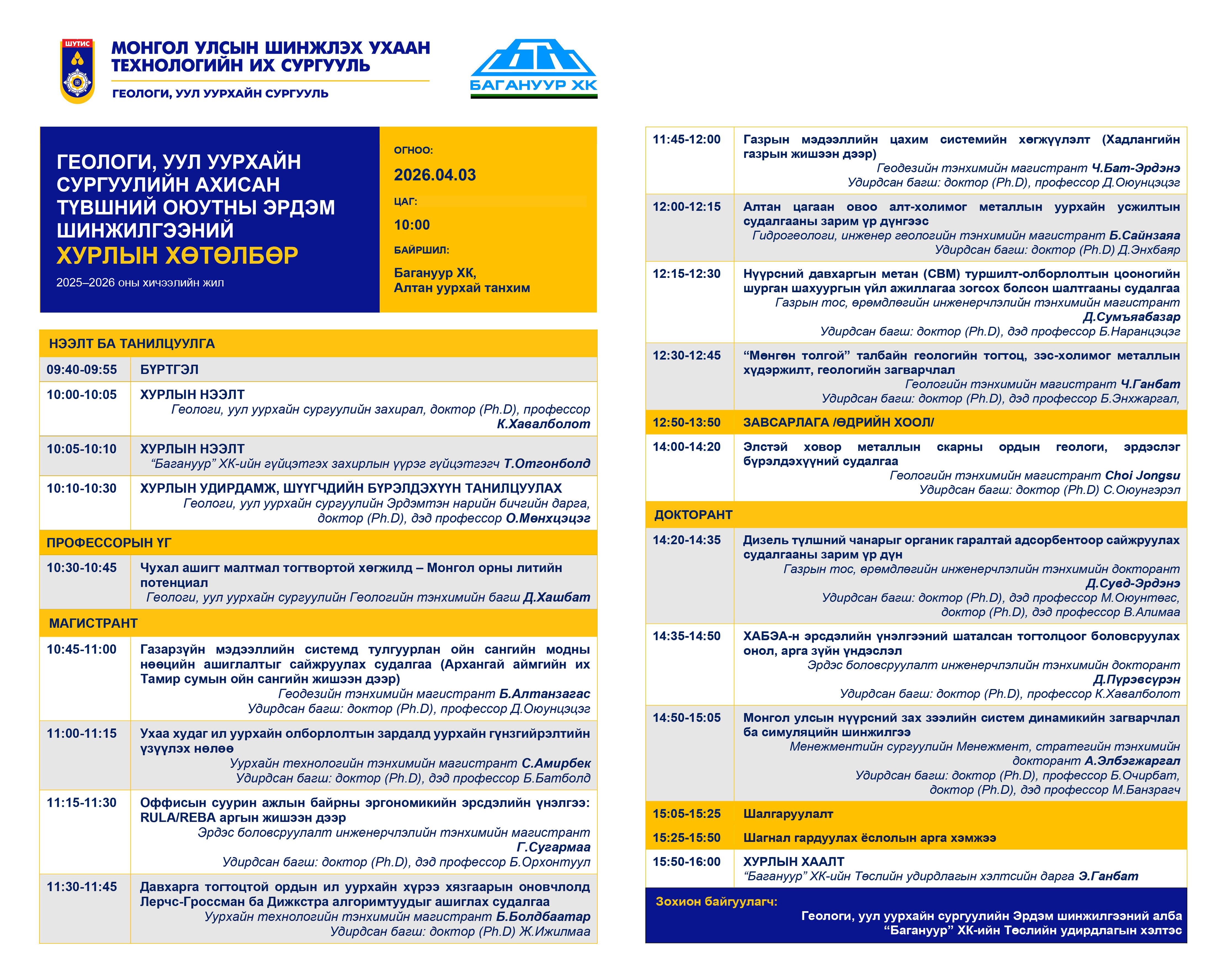 ГЕОЛОГИ, УУЛ УУРХАЙН СУРГУУЛ-ийн БАКАЛАВР ОЮУТНЫ БҮТЭЭЛИЙН УРАЛДААН маргааш болно